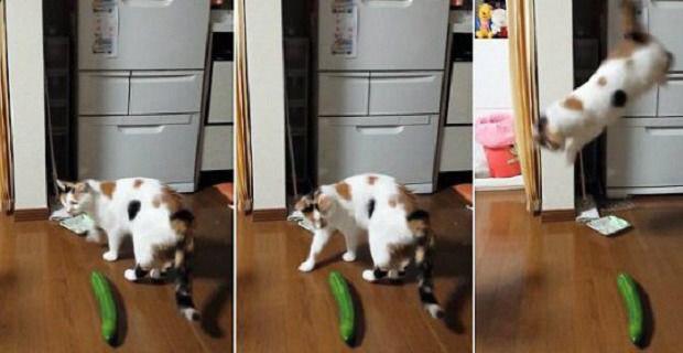 Seguro que en estos días han asaltado su teléfono móvil innumerables vídeos caseros en los que unos inocentes felinos se llevan un susto de órdago al interrumpirles su apacible momento de relax alimentario por la presencia de un pepino. La aparentemente inofensiva hortaliza ha nacido para engañar. De hecho, ni siquiera es una hortaliza, sino una fruta, al menos en términos botánicos. El caso es que los gatos pegan unos respingos tremendos al darse la vuelta y verse en compañía de un simple pepino. Según los expertos —que para todo tiene que haberlos—, es posible que el pavor se deba a la evocación de uno de sus mayores enemigos, las serpientes, por el color verdoso y la forma alargada. Otras teorías sugieren que se trata solo de una reacción atávica ante la detección repentina de un elemento inesperado colocado a traición.