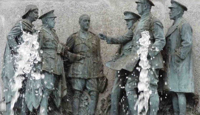Y ahora, teniendo en cuenta ese contexto histórico, que cualquier jerezano conoce bien en sus carnes, centrémonos no ya en el imperial caballo sobre el que permanece Primo de Rivera y defecan tranquilas las palomas, sino sobre los generales fascistas que están en uno de los lados del pedestal que sostiene el anacrónico conjunto escultórico.