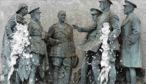 Al pie de la estatua del dictador Miguel Primo de Rivera y Orbaneja (1870-1930) están representados unos militares golpistas que pertenecían o apoyaron al bando militar sublevado que cañoneó la II República. Eran generales que, además de ser fieles ejecutores de la "dictablanda" de Primo de Rivera en sus intereses de ocupación de Marruecos, protagonizaron (varios de ellos) en 1936 y años sucesivos sendas acciones contra lo que, democráticamente, la ciudadanía, un 14 de abril de 1931, había decidido para el país. La vigente Ley de Memoria Histórica no debería permitir que permanezcan donde están, porque fueron cómplices directos de una represión política en todo el país que se llevó por delante decenas de miles de vidas. Veamos: