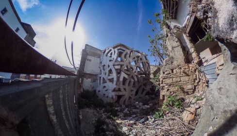 -(Acercándose al solar desde la calle… hasta que lo ve) Hostia… ¿Y esto qué es? ¡Madre mía, madre mía! Yo me voy a cagar en la puta…