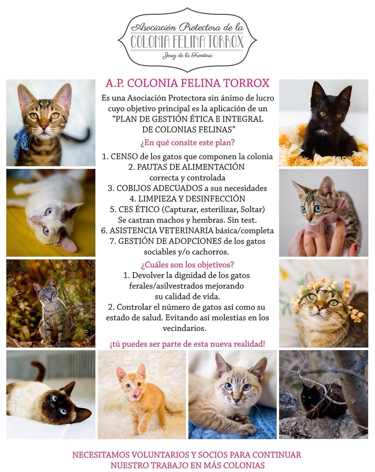 Reiteramos nuestras palabras de 2017 cuando propusimos al Ayuntamiento de Jerez y a todos los grupos políticos llevar a cabo este plan en todo el municipio: “Queremos expresar la convicción de que sólo con ruegos y peticiones nunca conseguiremos nuestro objetivo principal de ofrecer una calidad de vida digna a nuestro felinos jerezanos, nuestra asociación no está aquí para quejarse ni para culpabilizar a nadie, estamos aquí para actuar y por ello ofrecemos nuestra total disposición para llevar a cabo todo tipo de labores referentes a la protección animal en nuestro municipio”.