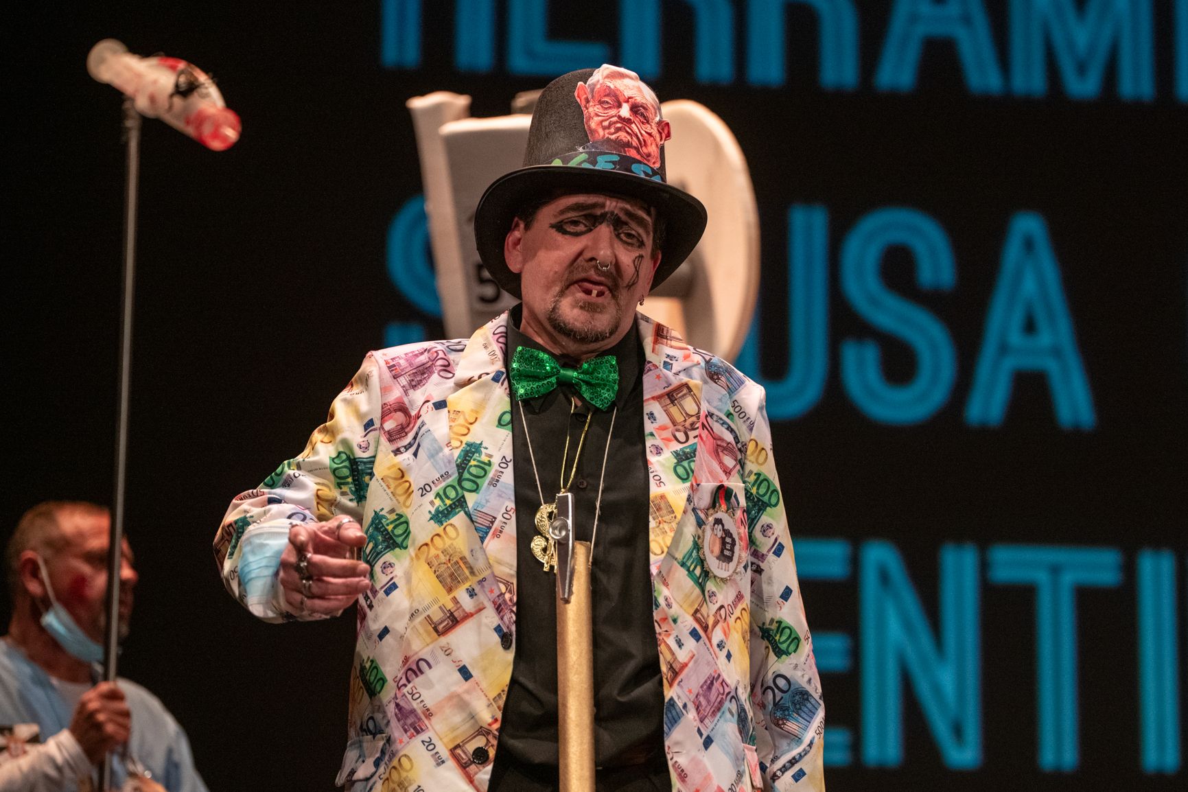 "Esta chirigota no busca premios, pero un mensaje necesario" es la ‘declaración de parte’ que demuestra la actitud ideologizada y politizada de esta comprarse, a diferencia de la mayoría del resto de agrupaciones. Todas tienen un trasfondo político, eso está claro. Toda palabra pronunciada o sugerida es una palabra política. No nos cansaremos de recordar a Platón y a toda la filosofía desde Grecia. Todo mensaje de toda agrupación carnavalesca es un mensaje político, partidista o no partidista. Y un mensaje legítimamente político. Otra cosa es presentar una agrupación para ofrecer doctrina, y es esa intensidad en la acción política de las palabras la que enervó a una buena parte del público del Gran Falla y a una buena parte de la afición de la ciudad de Cadi. El público olió la doctrina y no encontró la gracia por ninguna parte. Yo tampoco.