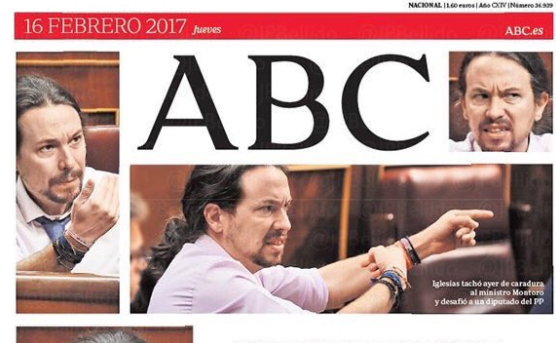 El diario de los Luca de Tena nos obsequió con una portada a toda página con hasta seis instantáneas de primerísimos primeros planos y planos detalle de Pablo Iglesias.
