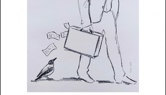 Negro sobre negro Dinero Dinero. Viñeta de Miguel Parra. Miguel Parra 25 de enero de 2024 a las 09:11h