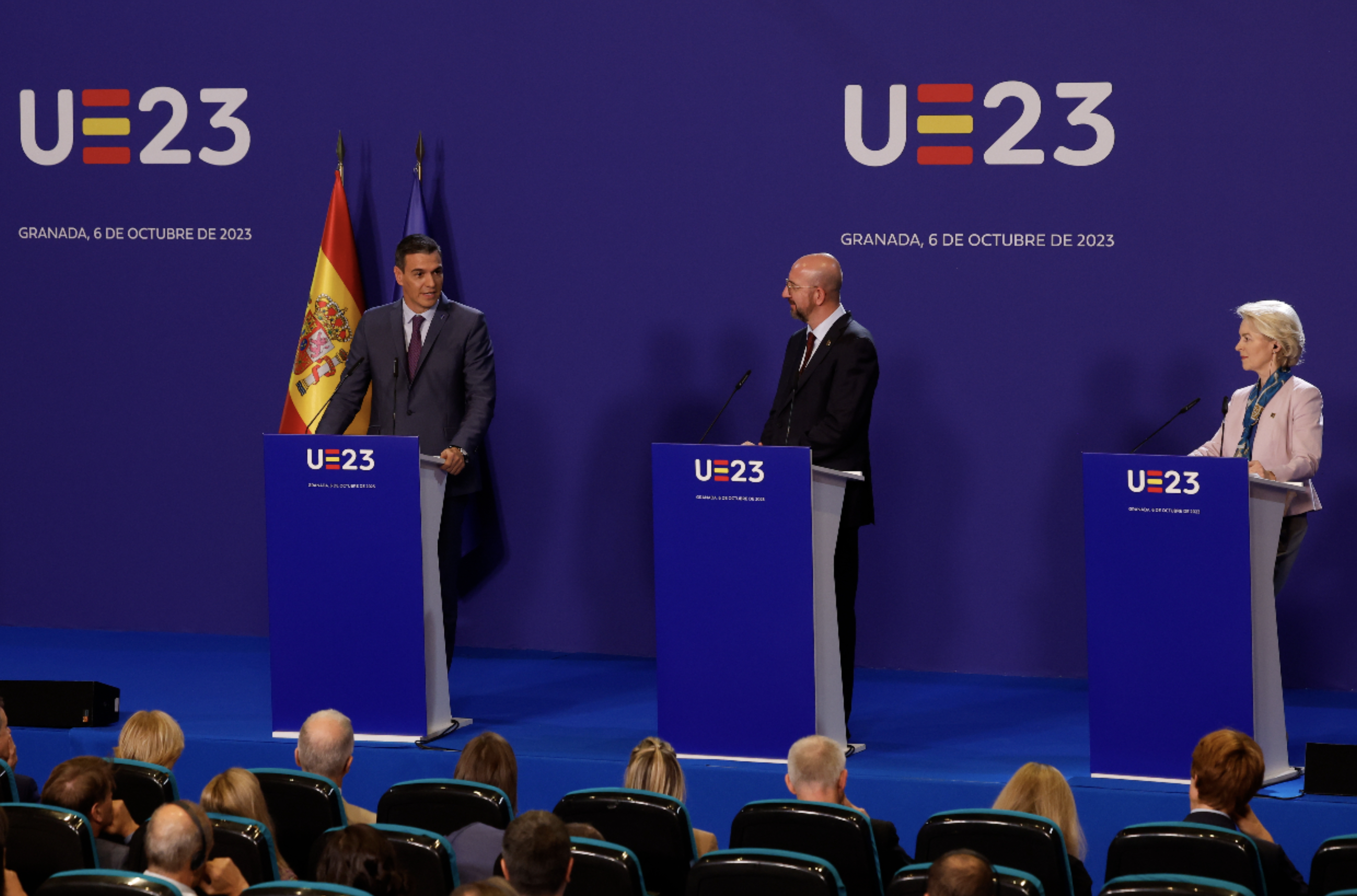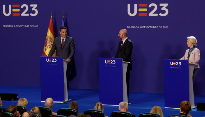 En el "show" de Granada se pretende que miremos lo necesaria que es nuestra participación bélica junto a los otros países de la UE. De momento, el dedo obvia señalar la obligada subida en los próximos presupuestos de Defensa a petición de la OTAN y la UE. ¿Será a costa del presupuesto de la Casa Real, de los sueldos y dietas de congresistas y senadores, u optarán por los tradicionales recortes en Sanidad o Educación?