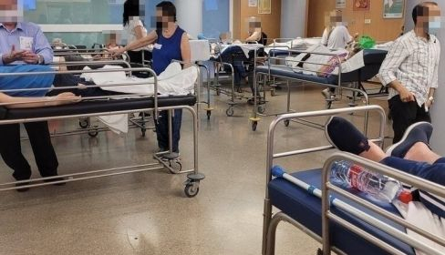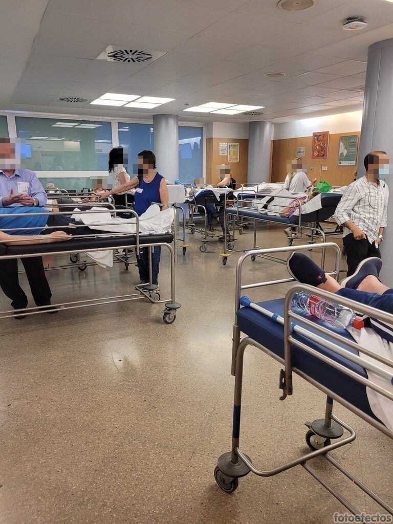 En una sala de espera uno sabe que se va a encontrar a pacientes y familiares, pero no una treintena de mesas camillas con enfermos graves, muchos de ellos con respiradores, que llevan más de 20 horas esperando a que haya camas libres para ser subidos a planta. Ni que decir que esos pacientes, que llevaban 20 horas esperando una cama libre, no habían probado bocado porque, oficialmente, hasta que no suben a planta no forman parte de los ingresados del hospital.