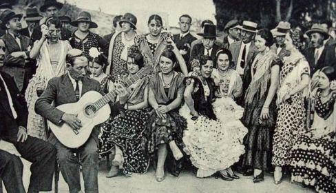 Los curiosos y los que no tienen la peseta para entrar se valen de los agujeros en la vieja lona del circo para contemplar al cantaor con su guitarrista. El mástil, como los telescopios, apunta al cielo estrellado. Los ojos del músico a la garganta del compadre. Las cuerdas, de tripa de oveja, están desenterrando ese dolor primitivo del cual huimos el resto de mortales. Es puro intestino seco sonando a alambre.