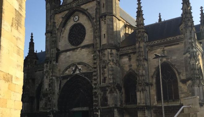 Pegada a los muros de la iglesia hay una bretona vendiendo sus carnes, un normando defendiendo la leche de sus vacas sagradas, uno del Loira —junto a su mujer que parece española— cuidando la fama de sus quesos y sus vinos.