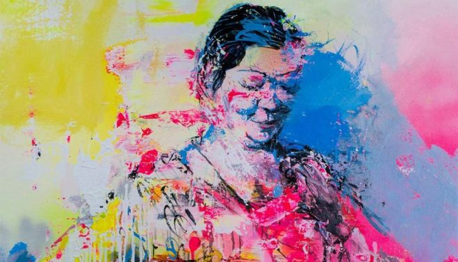 Una cabeza decapitada por un bordón, abarrotada de cante y linaje, inunda con vida cada uno de los confines de la tela. Este lienzo, sumergido en un rosa palo tan melancólico como lo fue en su día el capote de Paula, revela los entresijos del jipío andaluz. El grito universal. La queja brota incontenible, sin ánimo de salvación, porque entiendo yo que el alma donde no tiene cabida la maldad, es un alma que tampoco espera lo peor del mundo. Hijo, que no se te olvíe nunca el viví.