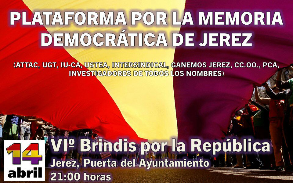 Además, no sólo es nuestro deber rescatar y devolver a la opinión pública su posicionamiento en cuanto a la disyuntiva República o Monarquía y el debate constituyente, sino que tenemos, lamentablemente, que seguir insistiendo para recuperar la memoria que nos robaron. En el segundo país con mayor número de desaparecidos tras Camboya -hecho continuamente denunciado por Naciones Unidas-, su Presidente del Gobierno no tiene claro que sea cierto que miles de familias no sepan donde están enterrados sus abuelos y tampoco cree que el ejecutivo "pueda hacer nada para remediarlo". Es nuestra tarea recordar una y otra vez los avances sociales y democráticos que trajo consigo la Segunda República y que se truncaron tras el golpe fascista del 18 de julio de 1936. La pedagogía es más necesaria que nunca. En ello están asociaciones como la Plataforma de la Memoria Democrática de Jerez que trabaja en contra de la complicidad que lleva consigo el olvido de nuestra historia. Precisamente es este colectivo el que nos convoca a un brindis por la República este jueves 14 de abril a las 21h en la puerta del Ayuntamiento. Allí, como demócrata, estaré. Por la regeneración cívica y democrática, por la puesta en valor de los principios republicanos. Salud y República.