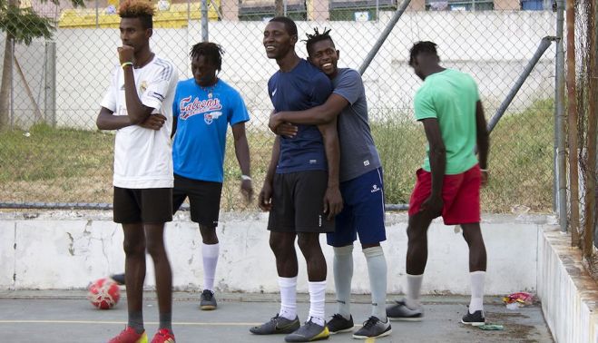 Y fue así, de mano de los “boys in brown”, como conocí la historia de su hermano pequeño, otro club, aún más diferente, que nada tiene que ver con todo lo que conocía hasta el momento. Un equipo donde cada sonrisa es un gol y cada partido una victoria. Un equipo formado por migrantes, llegadas hasta Hamburgo en 2012 desde la isla de Lampedusa, en busca del refugio de esta Europa que cierra fronteras a la vida. Un equipo formado por personas del colectivo “Lampedusa in Hamburg”, que tuvo que pelear en las calles de Hamburgo el asilo y los derechos que las instituciones les negaban, que se manifestó y que acampó al raso en las calles de Hamburgo y que fue apoyado en su lucha por las vecinas de Sankt Pauli, que también tienen algo de experiencia en estas movidas. Su nombre, FC Lampedusa.