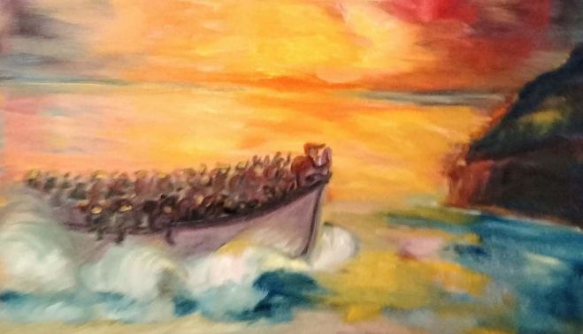 Los marineros tuvieron miedo, y tras echar todos los enseres de la nave al mar, cada uno clamó a su Dios, después bajaron al interior de esta, y vieron a Jonás durmiendo.