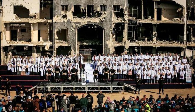 Pero también están las noticias esperanzadoras. Un grupo de 168 médicos y médicas palestinos han recibido su certificado de especialización este final de diciembre. La ceremonia de graduación se ha celebrado ante los escombros de lo que una vez fue el hospital más grande del territorio palestino, el Complejo Médico al-Shifa en la ciudad de Gaza. Han estudiado y se han examinado mientras trabajaban sin parar dentro de los hospitales de Gaza durante estos dos últimos años, en las mismas condiciones de inanición, desplazamiento y genocidio que sus pacientes y todos los gazatíes. Algunos también resultaron heridos, fueron detenidos o sufrieron la muerte de familiares. Y ahí se les ve en la foto, todos y todas con su bata blanca ante unas tristes ruinas que en ese momento han dejado de serlo.