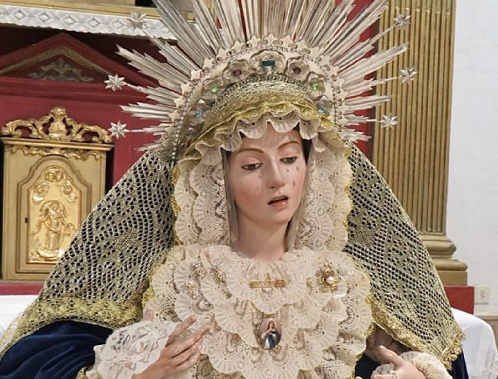 Fue una sensación rara al principio, pero también soy consciente del privilegio que supone el decidir la mirada con la cual la madre del salvador y de todos nos guiará y observará de por vida. Una mirada, al igual que un suspiro y por qué no, el silencio, deben ser suficientes para explicar el amor, dijo años atrás un poeta francés. Los ojos de esta santa madre, aunque dolorosa, están hechos para desprender amor infinito. Cinco lágrimas que simbolizan el dolor, la compasión y el sufrimiento por la humanidad, coloqué en su nacarado rostro para llamar a la reflexión y al arrepentimiento de tantos demonios disfrazados de caballeros ejemplares.