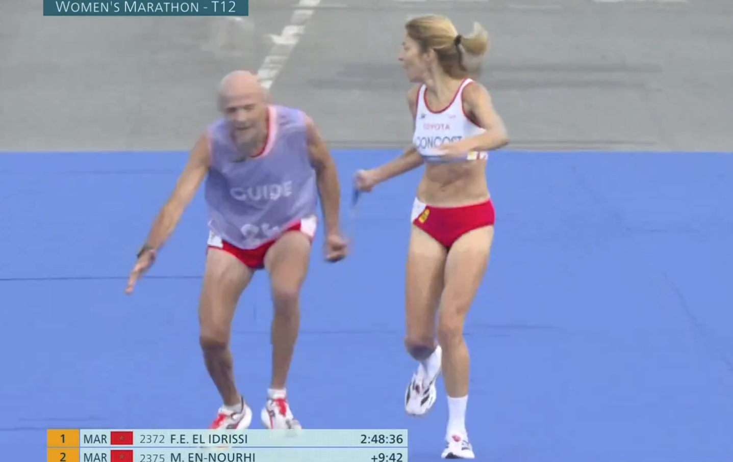 Un juez corroído por la envidia de no ser capaz de estar al nivel de esta deportista decide darle la vuelta a un acto generoso y ejemplar en el mundo del deporte y en vez de valorar como el resto de la población mundial este gesto de la atleta con su compañero de carrera y guía, decide no solo no darle una merecida medalla sino que ni siquiera se para a pensar en las consecuencias de sus actos, porque está deportista como otras muchas si no cumplen objetivos en su profesión pierden las becas o ayudas que hacen posible que puedan seguir practicando la disciplina.