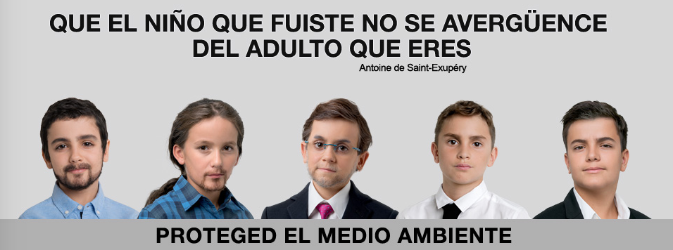 Bajo este pensamiento de Antoine de Saint-Exupéry, autor de El Principito, en Greenpeace han rejuvenecido a todos los candidatos para enviarles de vuelta a la infancia y recordarles sus buenos deseos. “Para que no se olviden del medio ambiente ahora que son líderes y están metidos en un torbellino de problemas y presiones”.