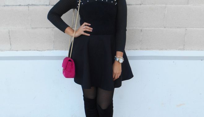 Lo combiné con mis botas altas que ya me habéis visto más de una vez, con éste precioso reloj de brillantinas que me regalaron en éste día y con ésta cucada de bolso de terciopelo en color rosa fucsia de Zaful ¿No os parece ideal?
