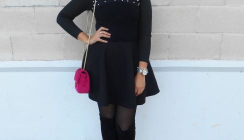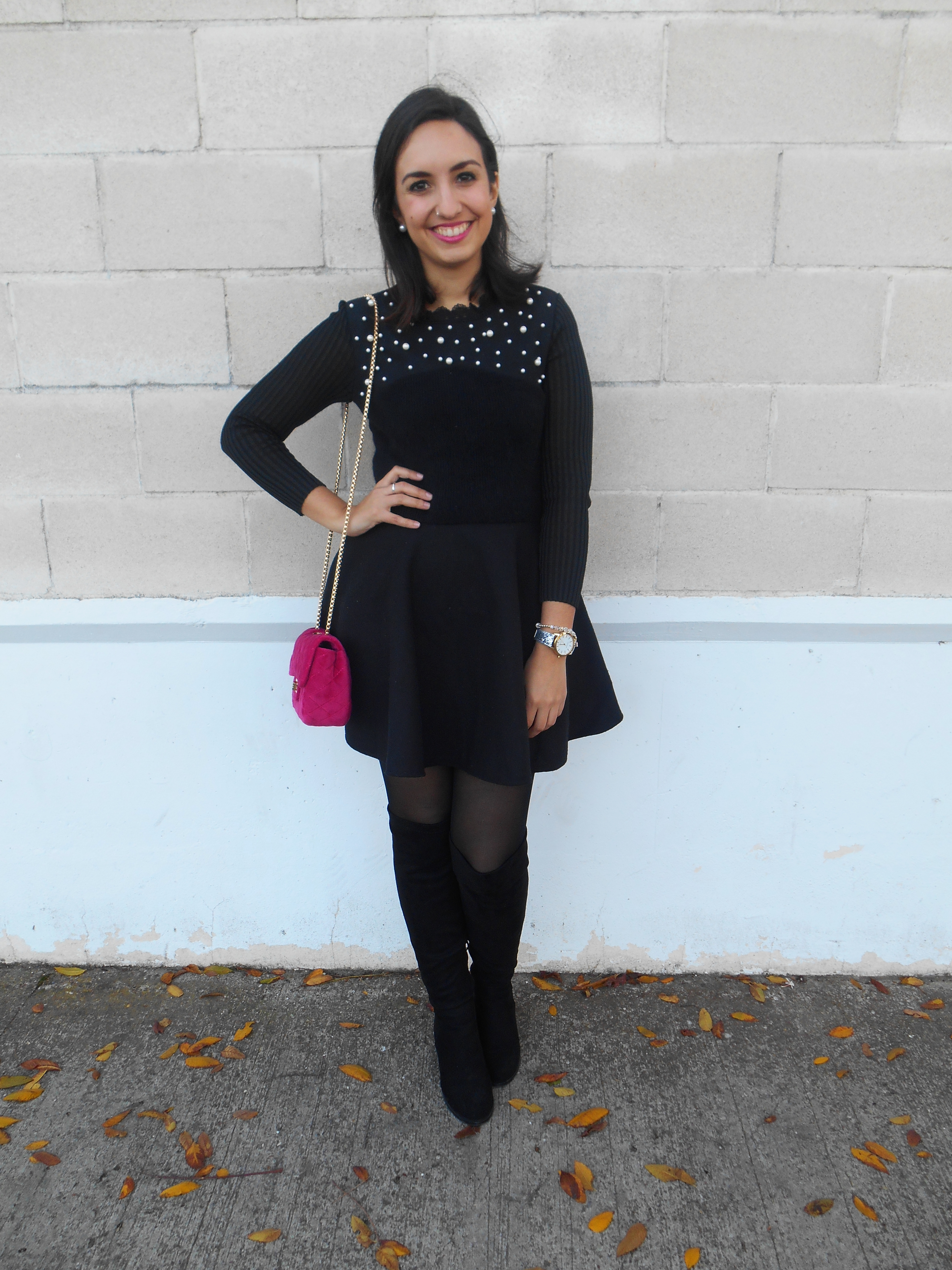 Nosotros, como cada día de Reyes, aprovechamos en salir a almorzar con la familia. ¡Hacía un día espléndido, la mar de soleado! Por lo que aproveché en lucir mi nuevo vestido negro de Sammydress. Es una pasada, muy original, pues si os fijáis, la parte de arriba parece un jersey de lana con unos detalles de perlas blancas que me encantan. Y por la parte de abajo, parece que es una falda, que al ser de tejido de paño ¡abriga muchísimo!