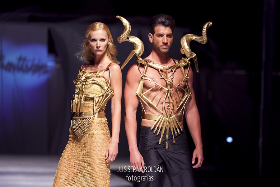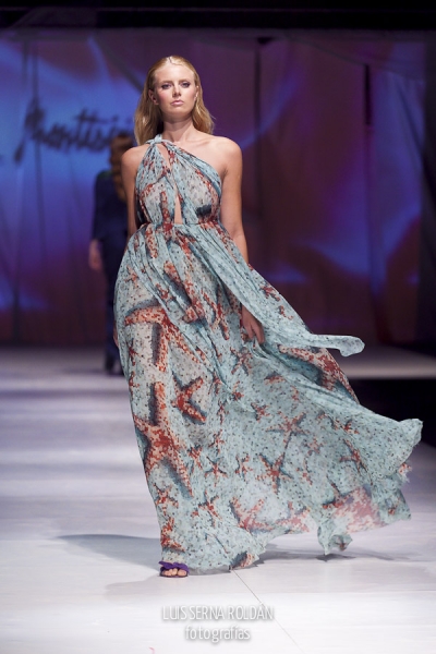 Junto a sus diseños lucieron las creaciones de la firma de joyería gaditana Avaritia, la cual presentó piezas inspiradas en Hawai, con colores vivos, gran tamaño y formas geométricas con base de plata, gemas naturales o semipreciosas.
