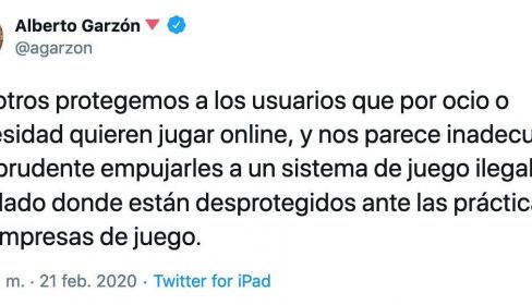 Otro ejemplo de la gran contradicción entre los limites y la propaganda: la Ley de Garzón contra las casas de apuestas. Con muchas expectativas mediante (un ministerio hecho exclusivamente para esto, nada menos) Garzón nos anunció en una rueda de prensa larga y (para mi gusto) torpe una Ley que limitaba los horarios de la publicidad sobre las apuestas, la aparición de famosos en los anuncios y poco más. Toda la comunidad quedó descontenta y enfada. Y lo peor, de nuevo, no fue que Garzón no explicara que tuvo presiones y que no pudo hacer más, sino que intentó convencernos (o él realmente fue convencido, que no sé que es peor) de que ya no estaba de acuerdo con prohibir. En las declaraciones primero y en un hilo de twitter después nos hablo de que el juego con responsabilidad: “Nosotros protegemos a los usuarios que por ocio o necesidad quieren jugar online, y nos parece inadecuado e imprudente empujarles a un sistema de juego ilegal y no regulado donde están desprotegidos ante las prácticas de las empresas de juego".