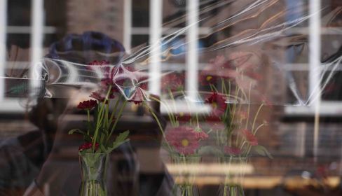 En muchos cafés de Alemania, también en España, se vende en la puerta o por la ventana. Han puesto una lámina de plástico que cubre la mayor parte y por la parte inferior entregan el café y reciben el dinero. Richter y sus Rosas, de 1994. La lámina de plástico transparente se mueve por la brisa y deforma lo que hay detrás, las caras de quienes nos sirven ese café oloroso, la sala que hay dentro. Al mismo tiempo, nos reflejamos nosotros mismos en esa lámina, y se refleja todo lo que está detrás de nosotros. Esa lámina de plástico transparente de los cafés de pandemia se convierte en una suma muy diversa de líneas y colores, se vuelve una foto movida. Todo se vuelve confuso. Hay que aprender a mirar en ese caos de formas y colores. A ratos vemos a alguien al otro lado, a ratos no. Hemos pedido un café, lo esperamos, lo recibimos, lo pagamos, damos las gracias, nos retiramos de la ventana, lo saboreamos, cambiamos unas palabras con alguien como nosotros.