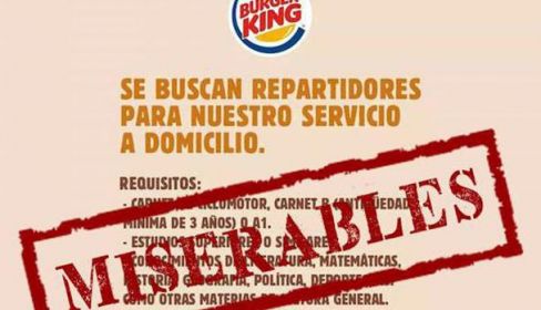 ¿De verdad les sorprende la oferta de empleo que publicó Burger King la semana pasada? “Una más”, pensé mientras los usuarios de las redes sociales se revolucionaban por todos los requisitos que pedía la cadena de comida rápida para contratar a un repartidor. Carnet de conducir con más de tres años de antigüedad, estudios superiores, habilidades en videojuegos, aptitudes musicales, conocimientos en literatura, geografía o historia entre otras materias. El revuelo causado me hizo pensar que quizá haya más desconocimiento del que creía entre gran parte de la sociedad sobre los requisitos que piden algunas empresas en las ofertas de trabajo que publican. Al final esta se trataba de una oferta de empleo falsa, formaba parte de una campaña de marketing de la cadena de comida rápida. Pero bien podría ser real. Es un claro ejemplo de lo que sucede en la actualidad cuando se intenta acceder al mundo laboral.