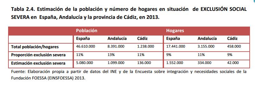 En Andalucía y la provincia de Cádiz, la proporción de personas que se encuentran en situación de exclusión son muy similares a la situación de España, el 25% y 24% respectivamente. Sin embargo, el espacio de integración plena se encuentra notablemente más reducido en Andalucía y especialmente en Cádiz, donde solo representa el 20% de la población, según el último análisis de la realidad provincial elaborado por Cáritas Diocesana, que se puede consultar en su web.