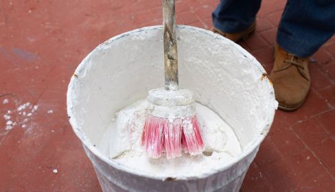 Unos días antes se preparaba la cal mezclando cal viva con agua ya que habría que esperar a que se secara, o en su defecto cal apagada. A la vez se disponían todos los utensilios: brochas de diferentes tamaños, escalera, baldes de zinc, cubos, una o dos cañas de considerable largura en cuyo extremo se ataba una brocha nueva, circular, de buen tamaño, y que de esta forma se lograba alcanzar la parte superior de la fachada, justo debajo del alero del tejado. Muy temprano porque la tarea era larga y toda la familia en pie para sumar esfuerzos, comenzaba la tarea removiendo la cal a la que se le añadía un poco de azulillo con el fin de obtener un blanco más luminoso.