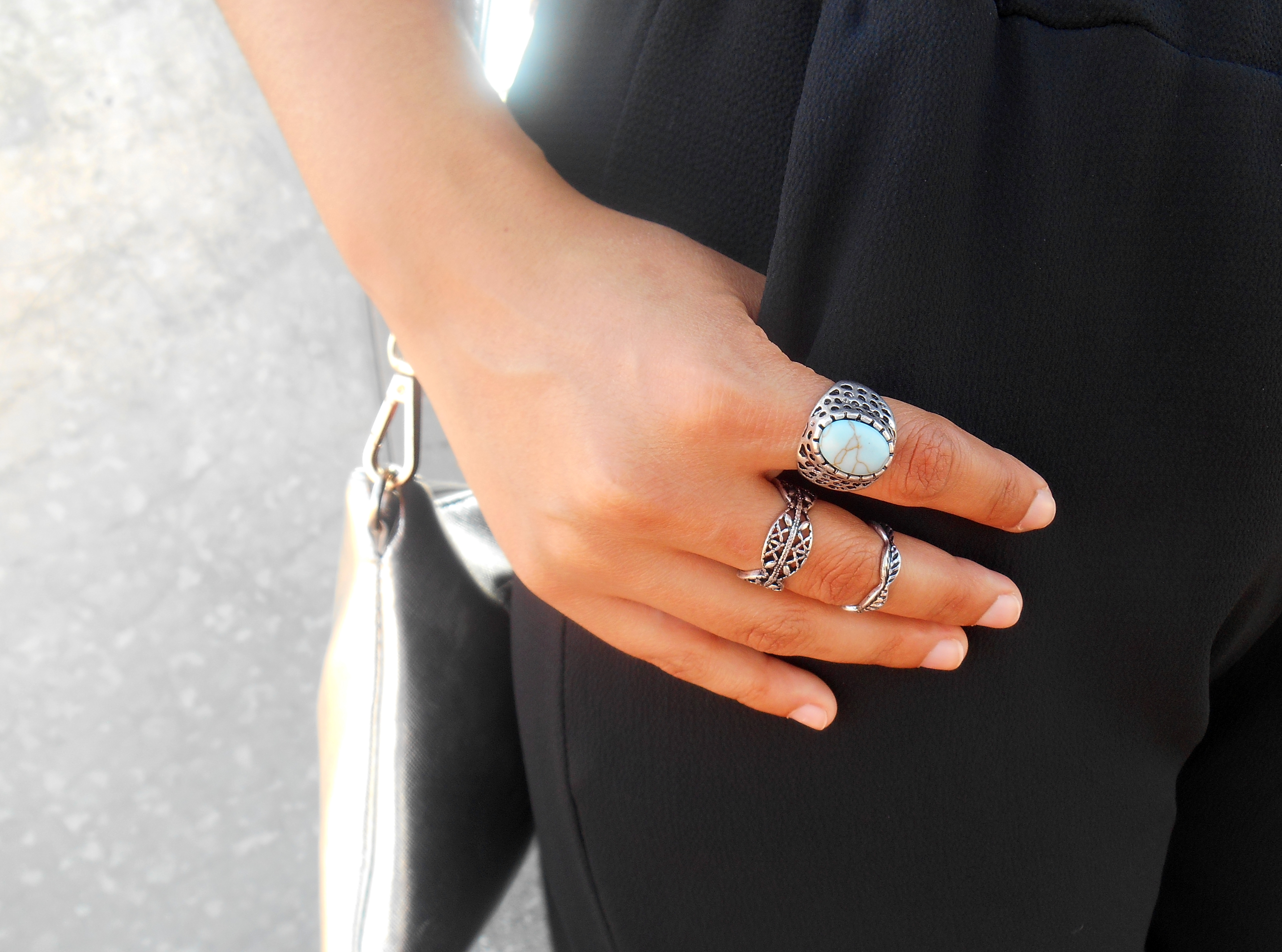 De complementos, llevé el bolso plateado junto a las sandalias también en plata que ya habéis visto en un post anterior, además de un juego de anillos estilo bohemio, el cual cogí de rebajas adelantadas jajaja Si no recuerdo mal, el pack de seis anillos lo compré por 3€ de 6€ que valían.