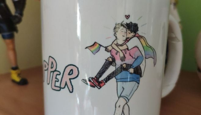 La primera referencia que tuve de Heartstopper fue una taza regalo de mi hijo a la que tuve que pegar el asa por romperla mientras limpiaba la repisa de su cuarto hace muchos meses. Se la habían regalado junto a los libros de la colección para que él los promocionase en sus redes. Me llamó la atención que fuesen en forma de cómics, pero confieso que ni siquiera los hojeé.