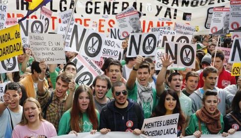 Se trata de decir NO alto y claro a una reforma segregadora e intervencionista que ataca directamente a la igualdad de oportunidades y retrocede en la equidad y en la calidad de la educación. NO a una ley que favorece la exclusión del alumnado con dificultades, además de establecer un sistema de reválidas con efectos punitivos en vez de formativos. NO a una clasificación arbitraria de las asignaturas, a una ordenación académica incongruente y antipedagógica. NO a que la Formación Profesional quede marcadamente devaluada. NO a quienes proponen la recentralización de las competencias educativas y a quienes niegan la diversidad lingüística de las comunidades con lengua propia, y además vacían de contenidos a los Consejos Escolares de los colegios.