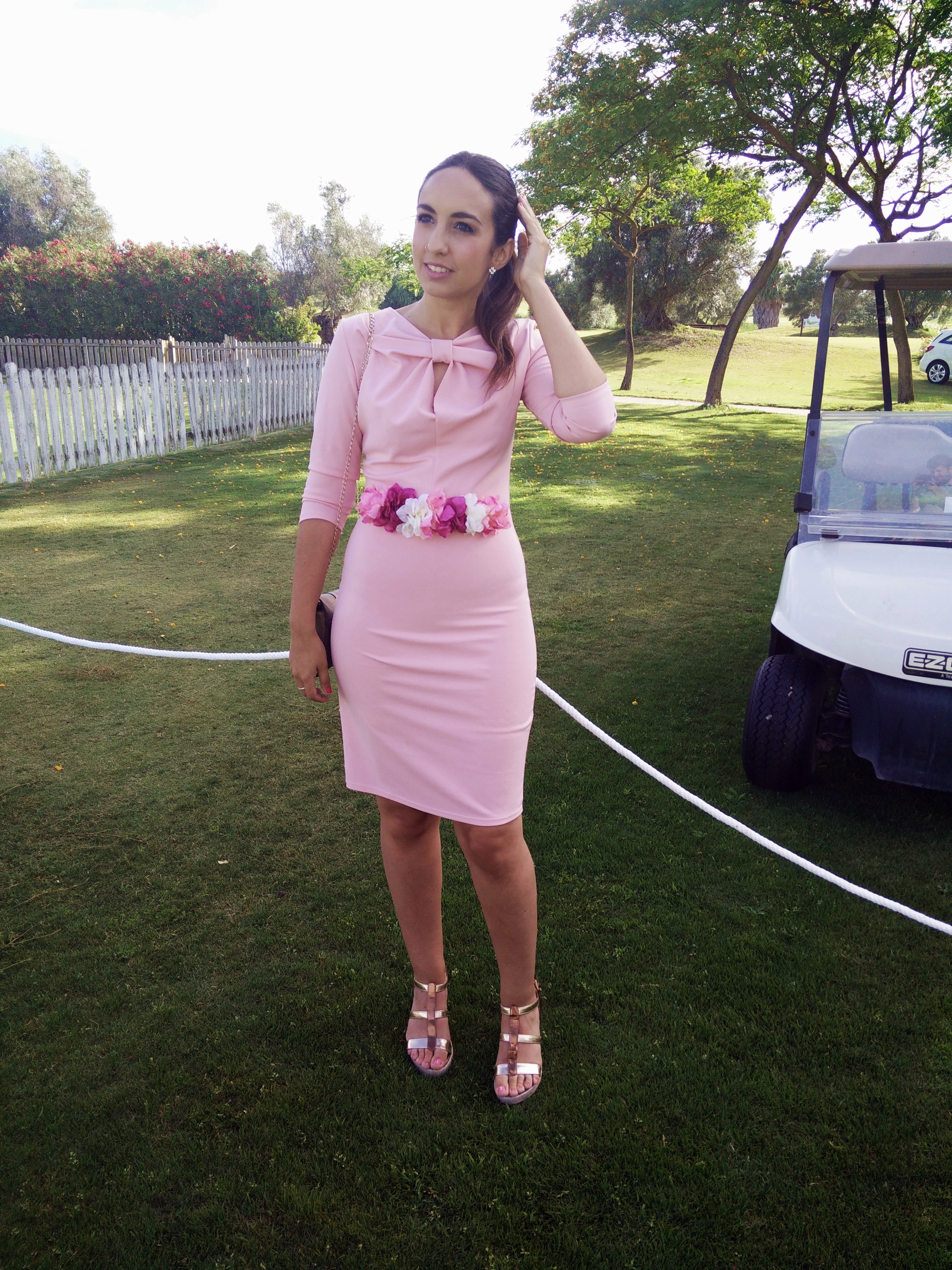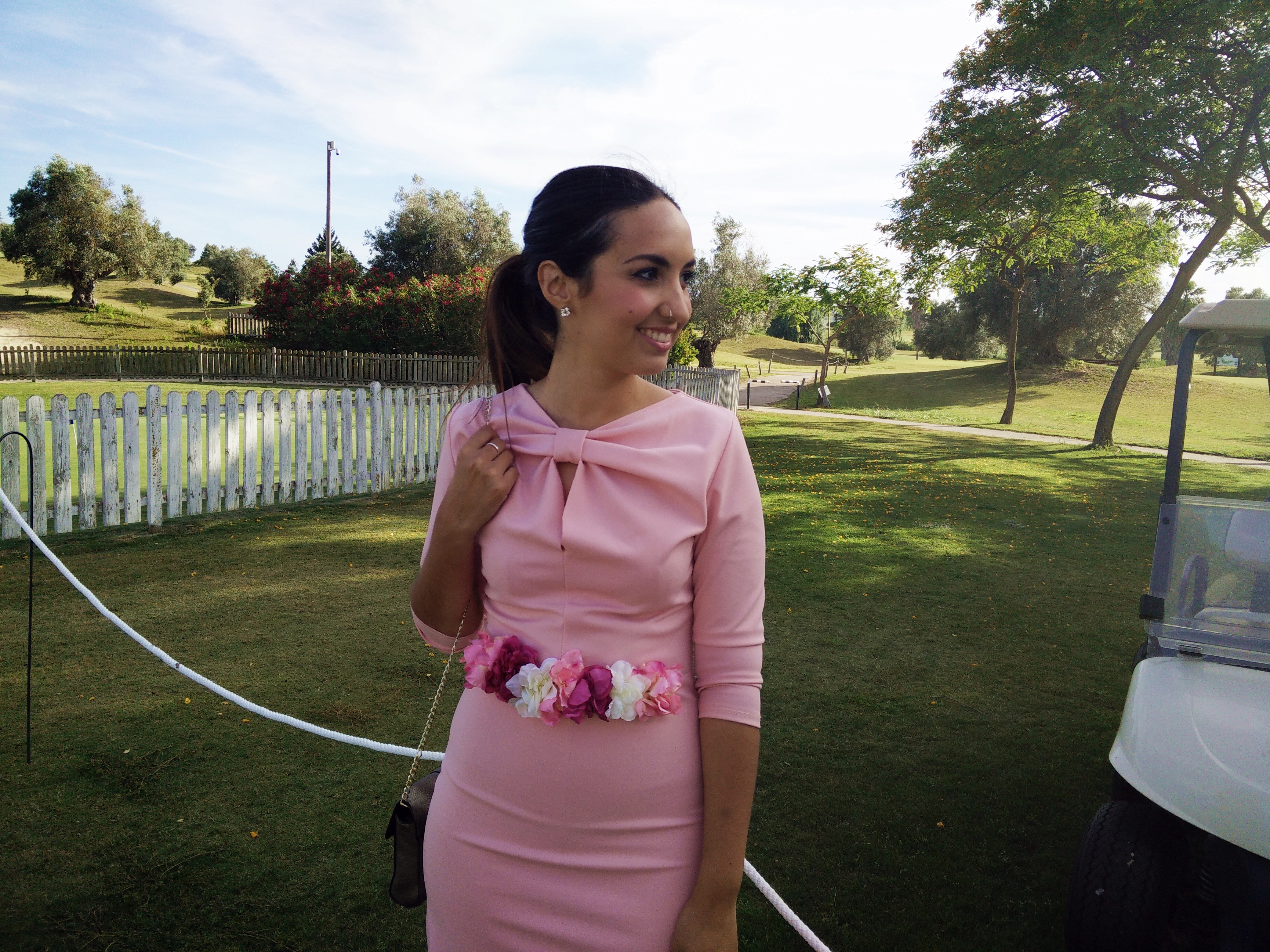 Para la cita, llevé este vestido rosa, ajustado a modo falda lápiz. Es el mismo que ya os enseñe en otra ocasión para asistir a una comunión pero esta vez le quise añadir unas flores a modo de cinturón. ¿Os acordáis de las flores que llevaba en la cabeza vestida de flamenca? Pues son las mismas jajajaja. Con un par de puntadas ¡y listo! La verdad que con ellas me gusta incluso más el vestido.