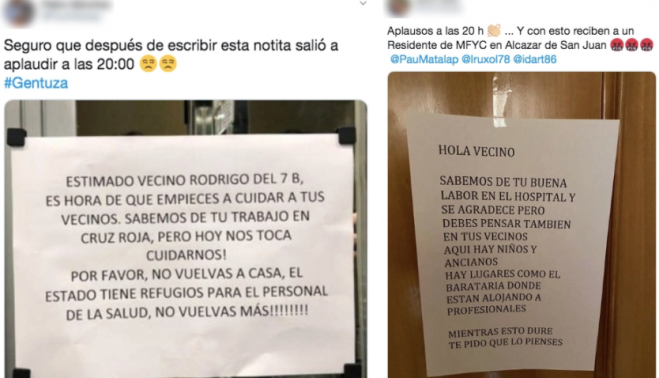 Han aparecido unos carteles anónimos, en varios portales, en los que incluso se identifica al vecino médico o sanitario y se le advierte, con dramatismo, que no vuelva a su casa, que se vaya a uno de esos hoteles para posibles infectados para no poner en peligro a todo el vecindario. Esto me ha recordado cómo en la Edad Media los leprosos eran anunciados en los púlpitos y apartados para vagar por los caminos menos frecuentados, con las tabillas de San Lorenzo en la mano para espantar a cualquier despistado que pudiera acercárseles.
