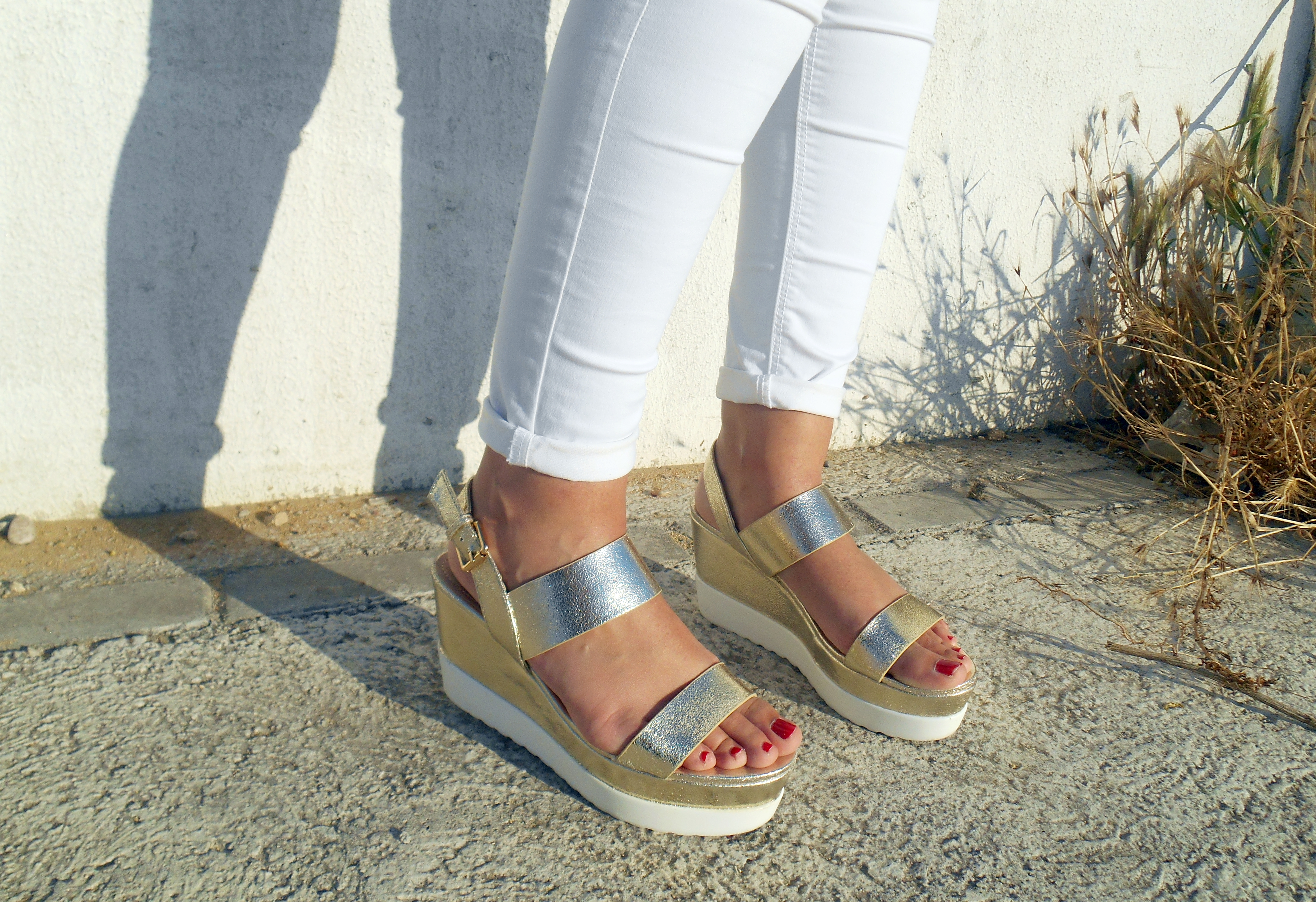 Sobre el look de hoy deciros que me encanta el blusón y el aire bohemio que tiene. ¡Me chifla este estilo para el verano! Lo combiné con unos pitillos blancos efecto push up y mis nuevas sandalias de doble plataforma doradas y blancas que son maravillosamente cómodas y bonitas.