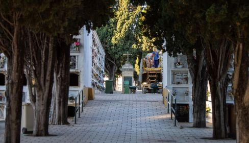 El cementerio está lejos de la ciudad, deben recorrer varios kilómetros pasando por campos extremeños donde pastan libres los toros, que no saben a dónde va ese camino que te lleva al recuerdo.