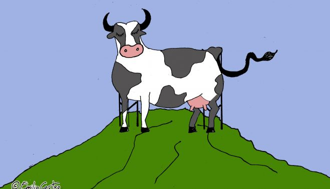 No sabemos qué le dijo Juanma a Fady, si fue algo serio, o tan divertido como lo que le dijeron a su prima francesa, que la hizo tan feliz, que ahora es la imagen de marca de una empresa quesera. El caso es que ahora es militante y muge hacia la derecha, (perdón hacia el centro). Se rumorea que desde que conoció a Juanma, ya no defiende al ministro Garzón cuando critica las macro granjas.