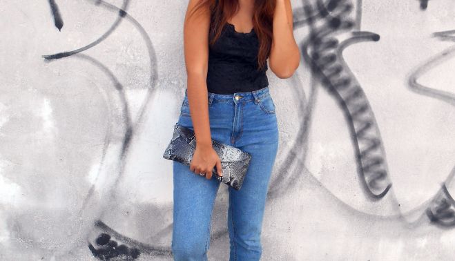 Ésta vez lo combiné con una de mis últimas inversiones en cuanto a pantalones vaqueros, se trata de unos mom fit ¡que me chiflan! Son de talle alto, y no quedan tan ajustados como unos pitillos así que son comodísimos.