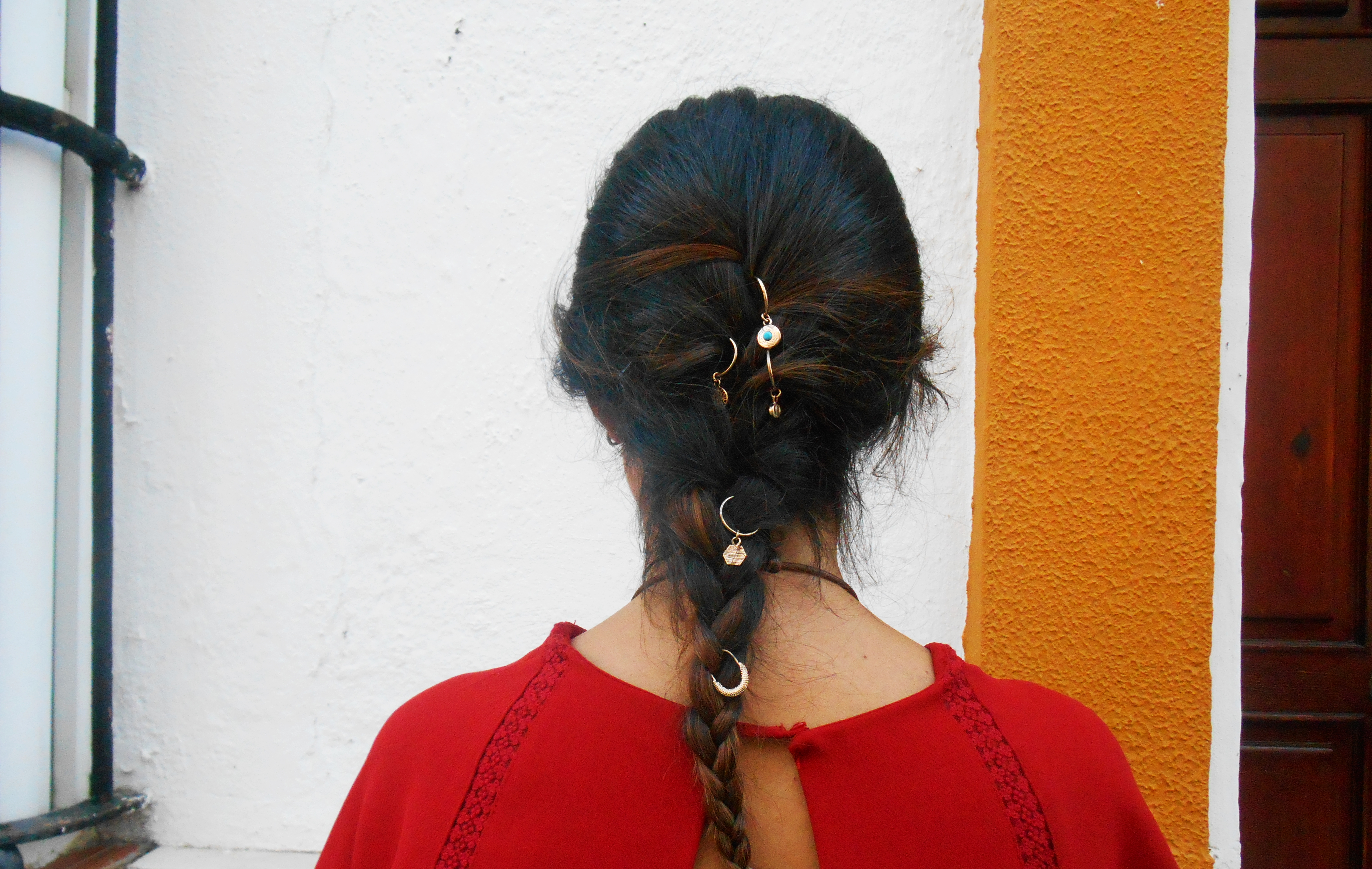 Ésta vez lo combiné con tonos marrones, que lo llevo tanto en las sandalias como en el bolso. Añadiéndole como accesorios detalles bohemios en color dorado, como el collar y las argollas para el pelo, ¡¡que me parecen chulísimas!! ¿Qué os parece?