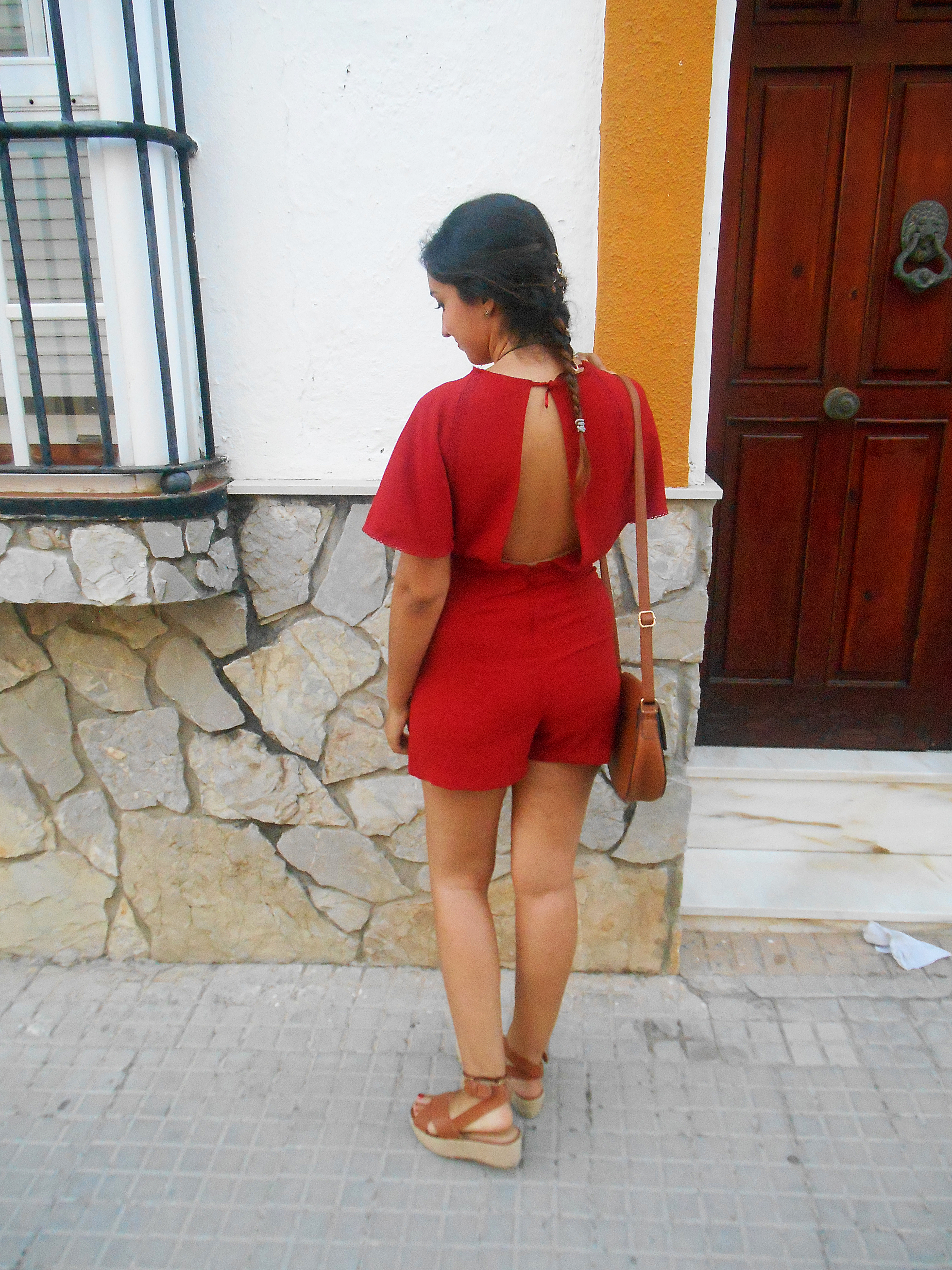 En cuanto al look de hoy, os enseño otra de mis compras de rebajas. Se trata de este mono tan original en color cazuela. Digo original porque si lo veis de frente nadie diría que es un mono, si no un vestido, ¡¡y eso me encanta!! Además, la caída que tienen las mangas también me parece super bonita.