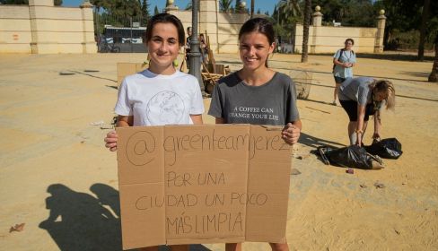 Julia Molina y Ana Fink, impulsoras de GreenteamEstas dos jóvenes, de 17 años, son las impulsoras de una iniciativa social que promueve el reciclaje y el compromiso con el medio ambiente. Ya han organizado dos quedadas en las que han recogido basura de lugares de Jerez como la zona del botellódromo y el parque González Hontoria, demostrando una gran conciencia medioambiental que debería servir como ejemplo a muchos otros conciudadanos que no cuidan de la limpieza de la ciudad.