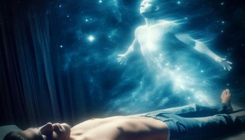 "Nada más caer en un profundo sueño, empiezo a notar como mi cuerpo se eleva sobre la cama, concretamente hacia la esquina de mi habitación. Pero lo raro es, que me podía ver a mi mismo tumbado en la cama. Mi cuerpo estaba ahí, pero mi consciencia flotaba en el aire contemplando todo a mi alrededor. Acto seguido, levitando a ras de suelo y en posición horizontal, inicié un recorrido. Salí de mi casa, y comencé un viaje sin destino, al menos yo no lo conocía. Llegué a una casa de campo, grande, de una sola planta, y entré por la puerta principal. Todas las dependencias se hallaban a la derecha, así estaban repartidas. La cocina primero, luego un gran salón, las habitaciones, y una última que es donde llegué finalmente. Allí pude contemplar a una mujer mayor, rubia y con el pelo corto tumbada sobre la cama. Pero la visión de todo en cuanto percibía me parecía que superaba todo lo imaginable, puesto que todo tenía una textura especial, diferente, o al menos así lo veía yo. Pero de pronto, emprendí en camino de vuelta, el mismo que realicé de ida, pero a la inversa. Llegué de nuevo a mi casa, me volví a contemplar a mí mismo tumbado en la cama, y tras situarme en paralelo, caí de repente sobre mi cuerpo. En ese momento desperté, pero esta vez, dentro de mi cuerpo, con una sensación muy extraña. No había sido un sueño. Estaba convencido de que aquella experiencia fue algo diferente".
