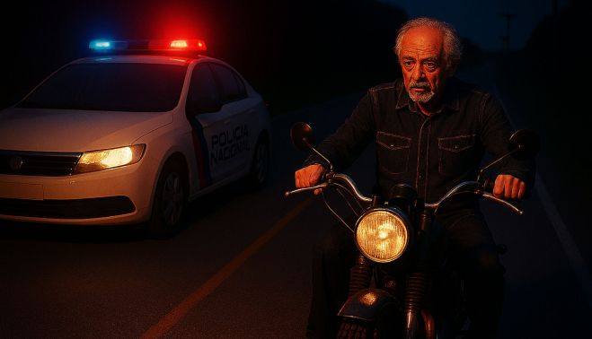 "Estaba de servicio durante una noche con mi compañero, e íbamos con el coche patrulla por los alrededores de la ciudad. Salimos a las carreteras que unían las demás poblaciones, y precisamente por una de ellas, vimos a un hombre mayor que conducía una moto. No había problema aparente, tan solo que no llevaba el casco de seguridad. Deduje que aquel hombre estaba realizando un trayecto corto para llegar a su domicilio, que seguramente estaría cerca. Mi compañero por aquel entonces era un novato que estaba empezando en el cuerpo, y no le gustaba dejar pasar ni una, así que me dijo que pusiera las sirenas y detuviera el vehículo delante de aquel hombre y su moto. Yo le decía que no, que lo dejáramos, pero me insistió en reiteradas ocasiones, así que encendimos luces, sirenas y le dimos el alto a aquel conductor. Nosotros paramos en el arcén, y la moto se paró detrás de nosotros. Por el espejo retrovisor se reflejaba la luz del único faro. Acto seguido, nos bajamos del coche. Fuimos hacia atrás para pedirle la documentación… y ya no estaba, desapareció. Sí, desapareció. No había caminos laterales, no se pudo esconder, era imposible. ¿Qué tiempo pudimos tardar en bajar del coche y llegar atrás? ¿Seis o siete segundos? No estaba el conductor, pero la moto tampoco. ¡Era im-po-si-ble!".