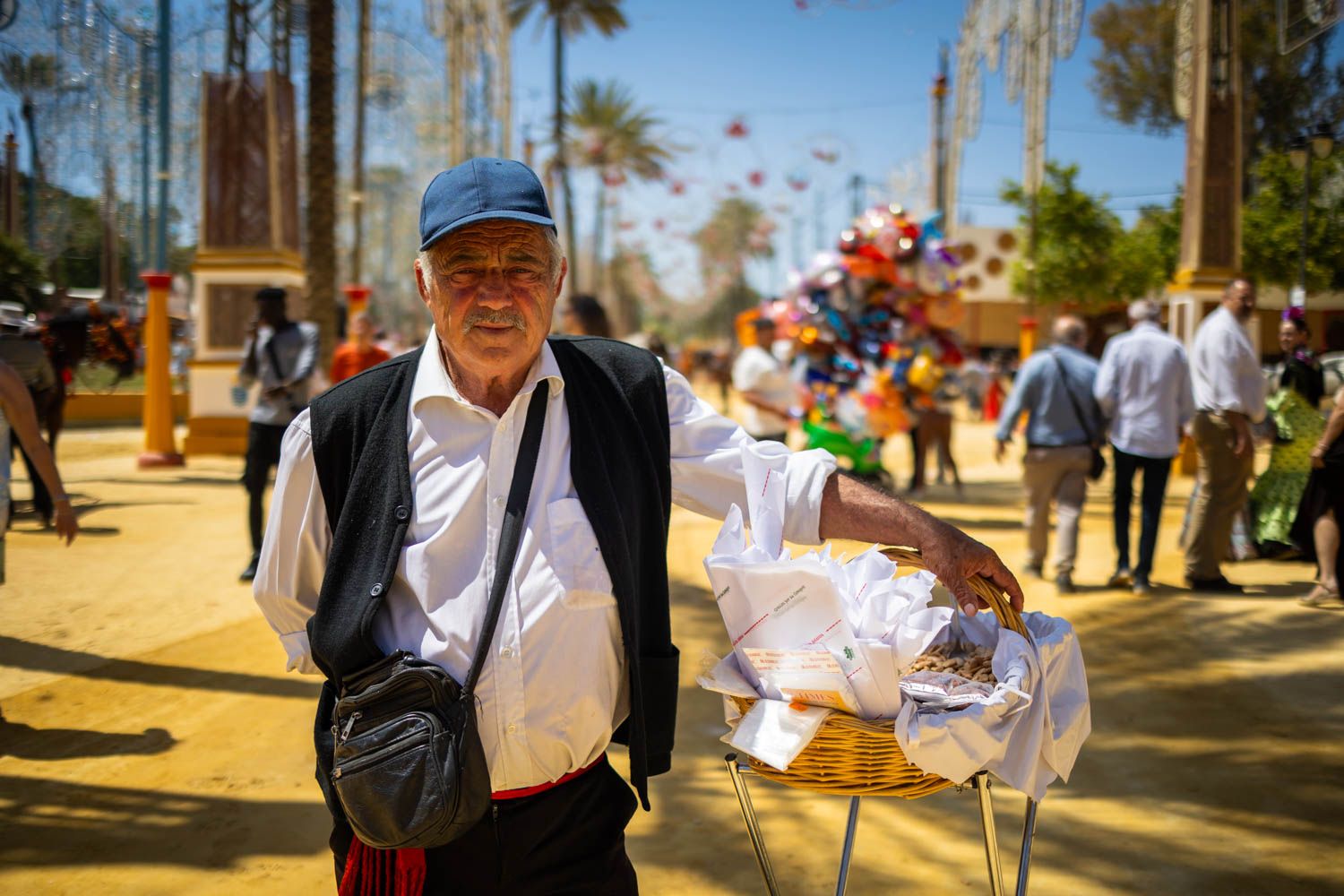 José Romero, con 40 años de experiencia en la elaboración y venta de almendras tostadas en ferias, lleva 15 años participando en la Feria de Jerez. Destaca que esta feria ofrece un ambiente muy agradable, lo que le permite disfrutar de una experiencia cómoda y provechosa.