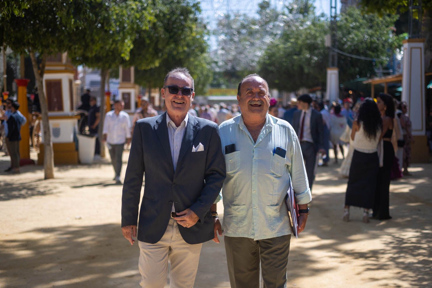 Paseando por el Real, es raro no encontrarse con alguien, aunque casi siempre es uno quien te ve primero. En esta ocasión, José María Sánchez Bazán y Miguel González Mata me saludan al grito de "¡Hey! ¡El fotógrafo de La Voz del Sur!". Ambos son trabajadores del Ayuntamiento y su labor consiste en revisar todas las casetas de la Feria de Jerez para asegurarse de que todo transcurra correctamente y que se cumple la renovada ordenanza reguladora de la mayor fiesta del año en la ciudad.