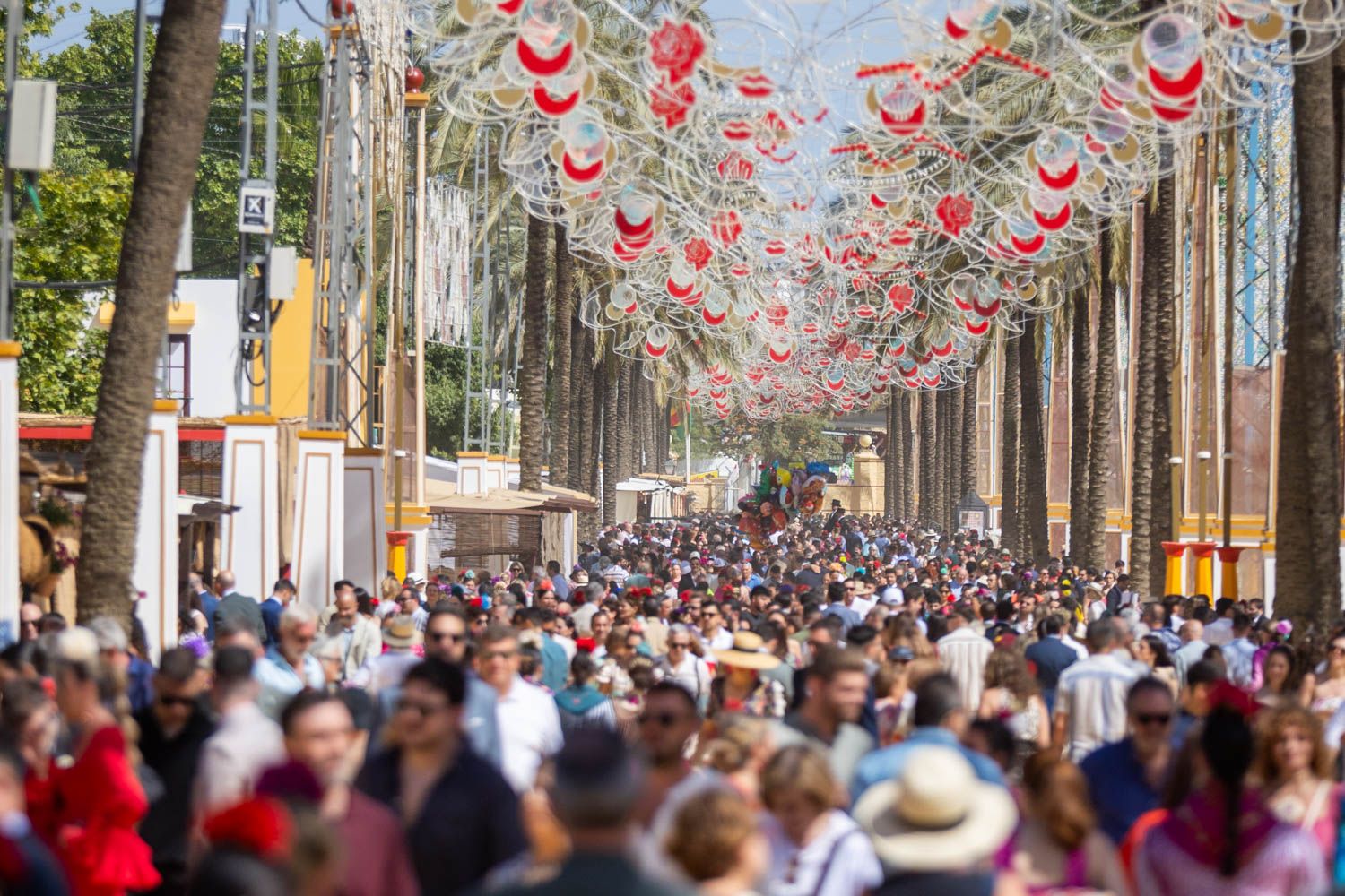 Llega el momento de dar vueltas y paseos, y en la Feria parece que todos eligen el mismo instante. Mientras comienzan las actuaciones en las casetas, el público asistente recorre el Real, haciendo fotos para luego lucirlas en sus redes sociales.