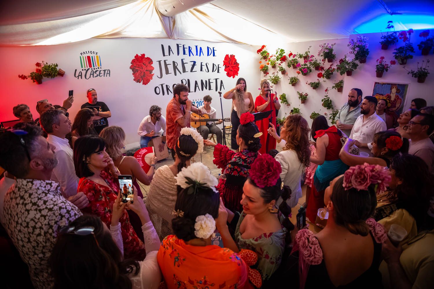 Estas son las cosas que solo pasan en la Feria de Jerez. Vas caminando, buscando la caseta del periódico, y de repente, desde la caseta de enfrente, escuchas una voz familiar. Me acerco y, a lo lejos, veo al Canijo de Jerez, en lo alto del escenario, cantando y disfrutando de la Feria como uno más, pero sin dejar de ser, por supuesto, El Canijo de Jerez.