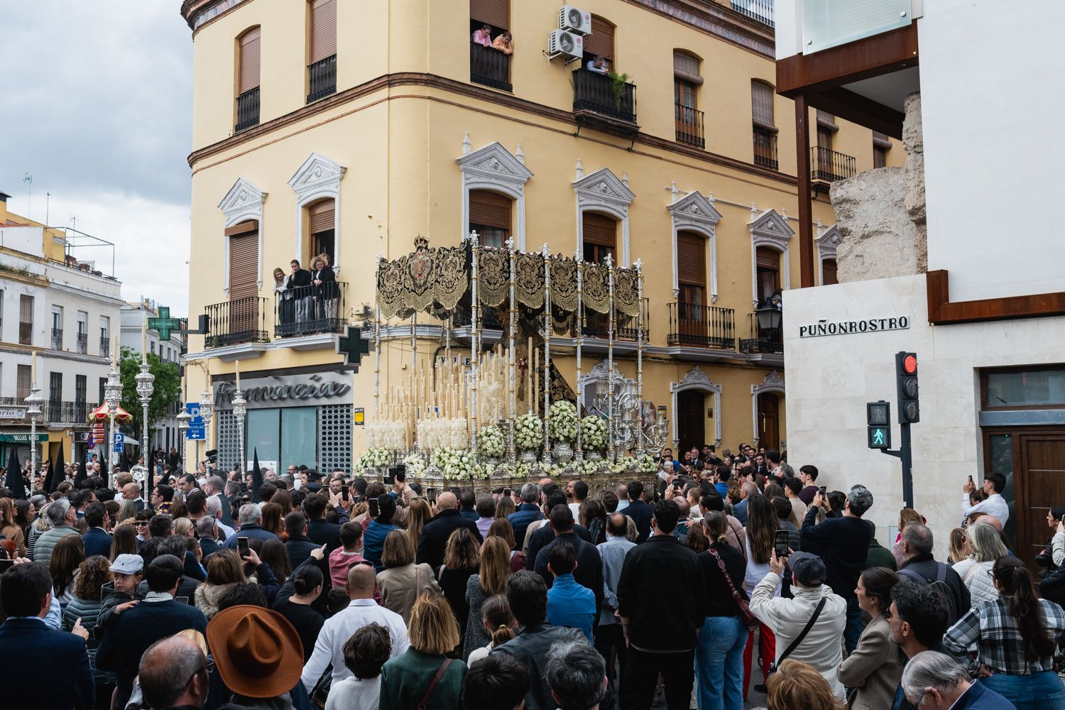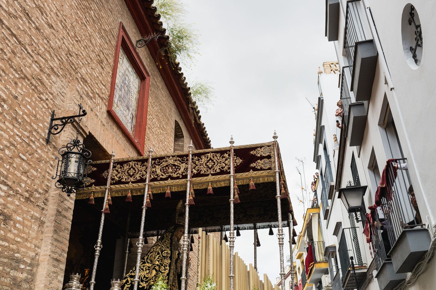 El palio de Los Servitas, saliendo de la capilla
