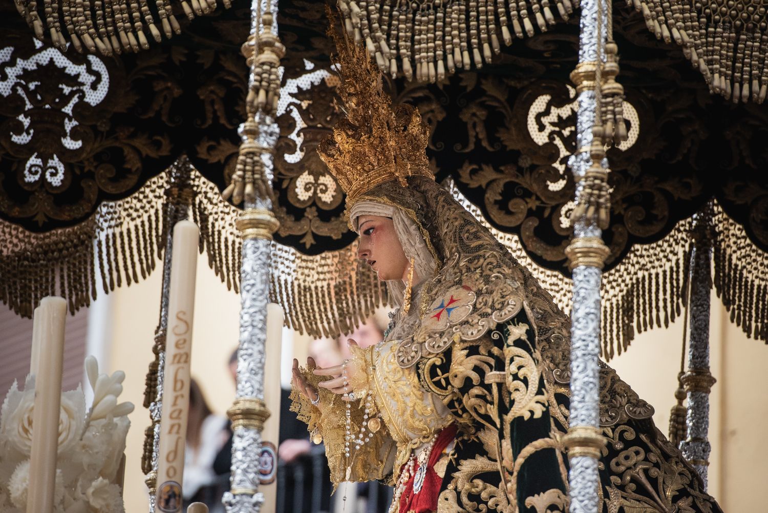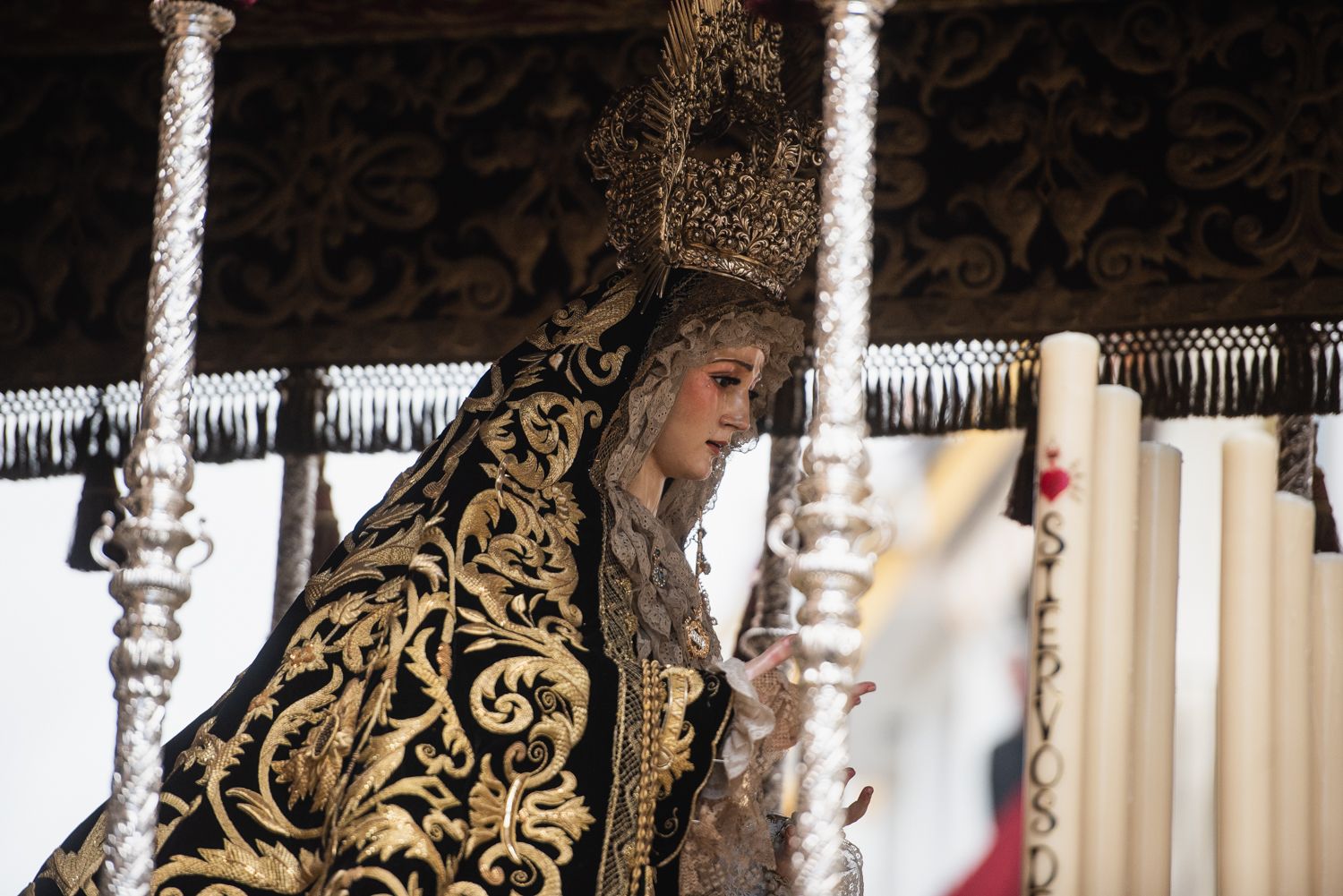 El palio de Los Servitas preparado para salir de la capilla