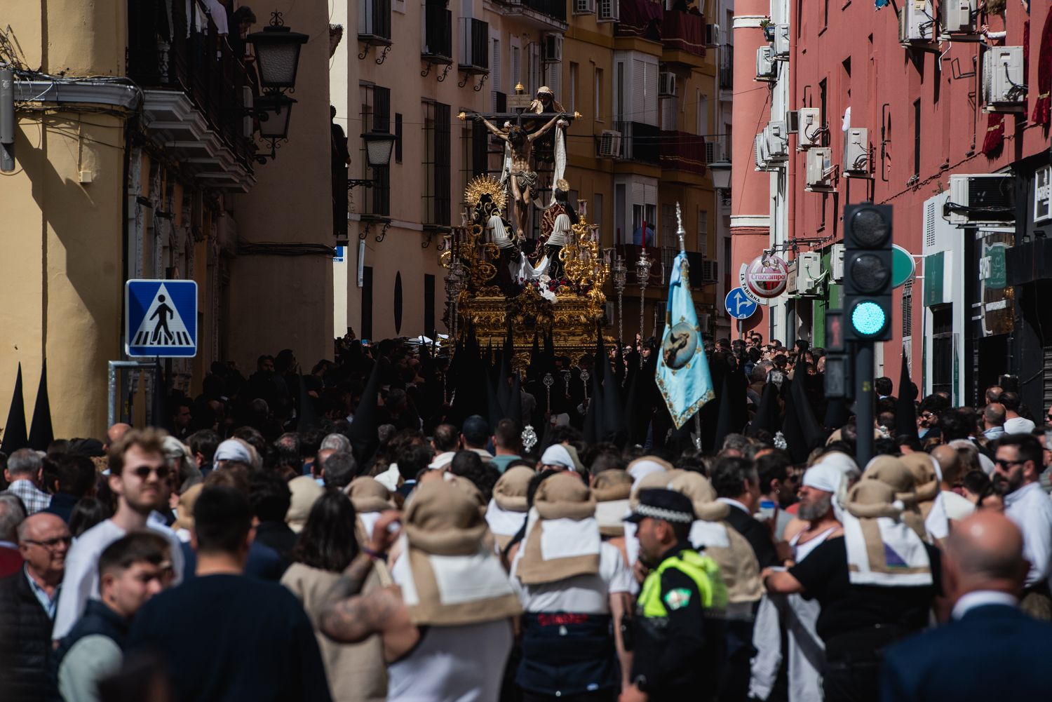 El primer paso de la hermandad de la Trinidad, en la calle Mateos