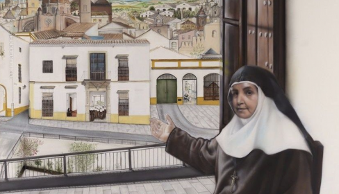 Una obra pictórica del artista jerezano Laureano Gallego ilustra el cartel conmemorativo de las bodas de diamante de la llegada a Jerez de las Hermanas de la Cruz, con convento en la calle Juana de Dios Lacoste. Es la primera actividad dentro del programa que se ha diseñado para celebrar esta efemérides, que incluye, en agosto, el traslado a la Catedral de la imagen de santa Angela para celebrar allí un triduo extraordinario.